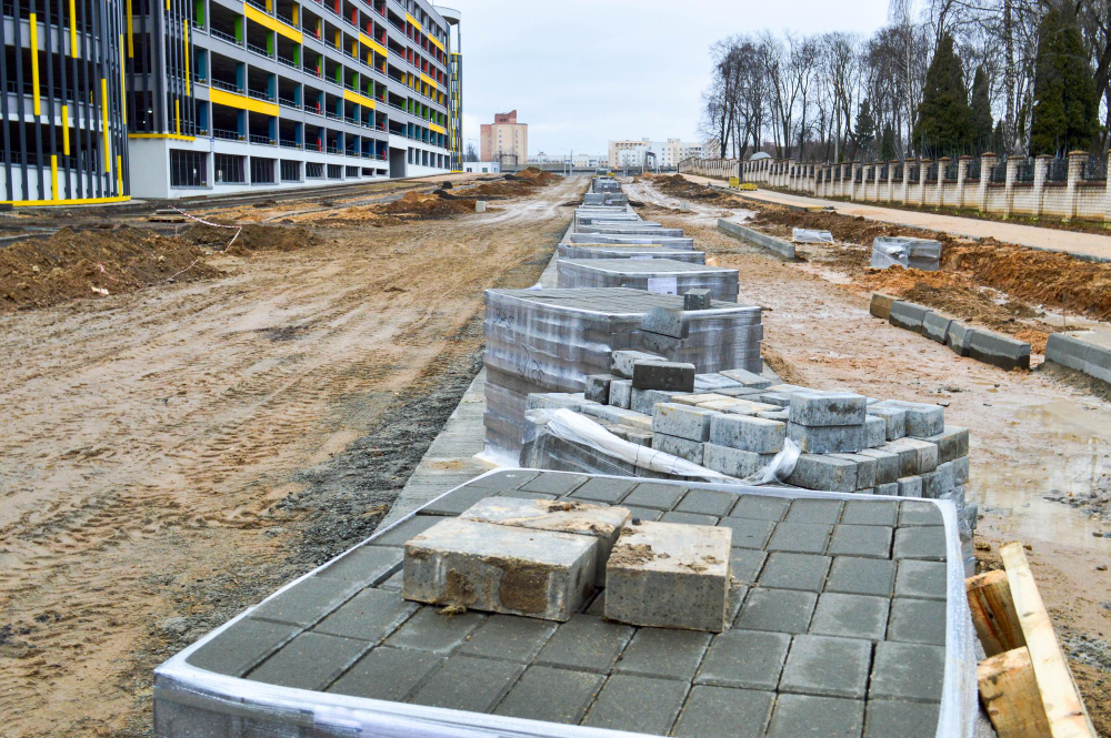 ‏• مواد الهاردسكيب مثل البلاط، الخرسانة المطبوعة، والرخام لتشكيل المسارات والساحات والعناصر المعمارية.